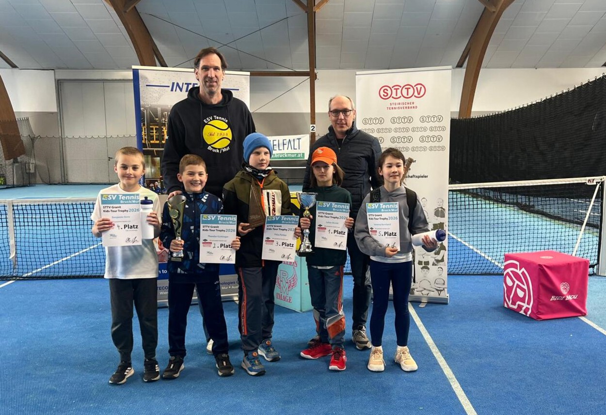 In der Brucker Tennishalle ging die nächste Turnierstation der STTV Granit Kids Tour Trophy über die Bühne. Nachwuchsspieler aus der Steiermark, Kärnten und dem Burgenland lieferten sich auf dem Red, Orange und Green Court spannende Matches. Unterteilt in Anfänger und Fortgeschrittene, bietet diese Kids-Tour für junge Talente eine ideale Bühne, um ins Turniertennis einzusteigen.